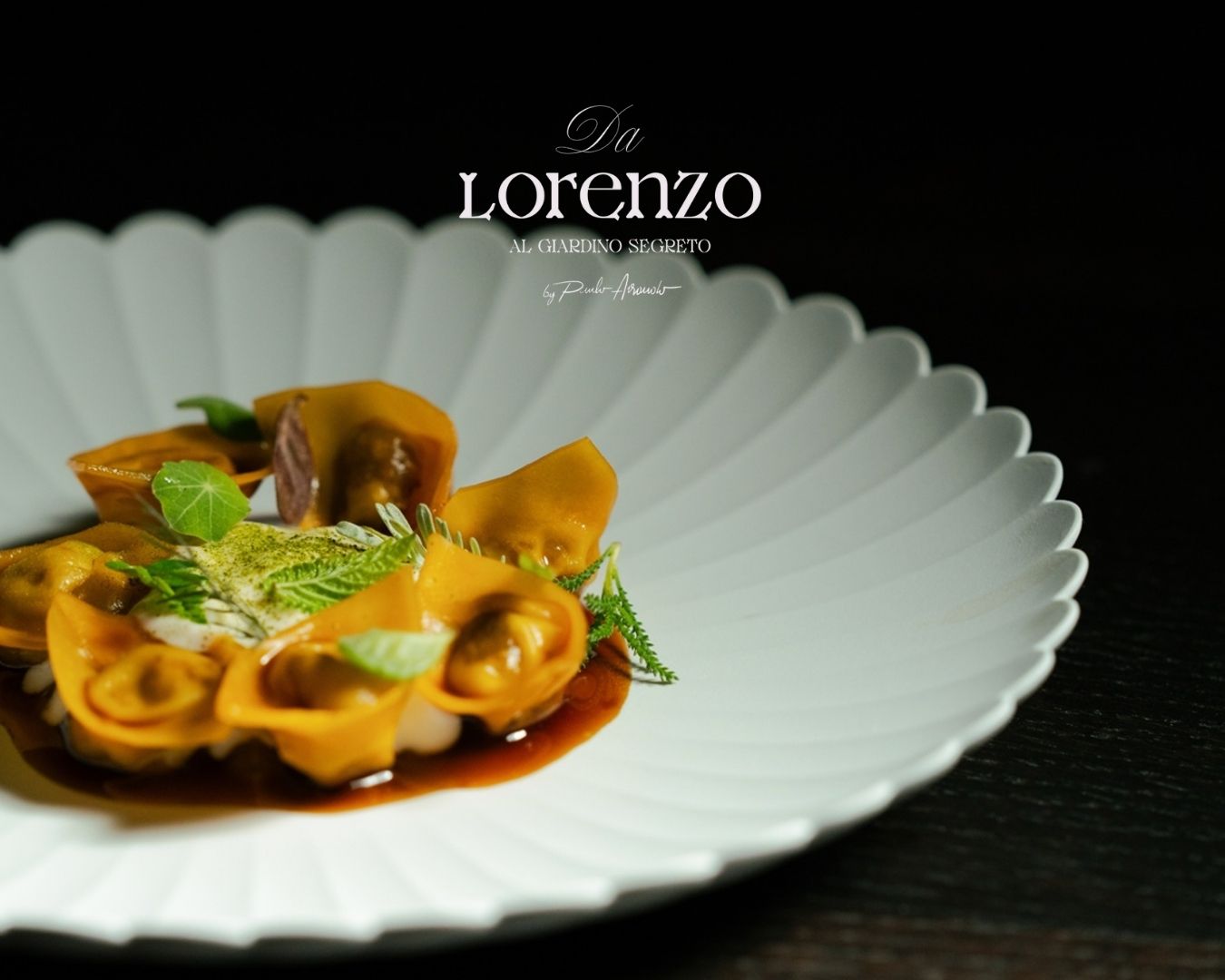 “Nascosto tra le eleganti mura dell’NH Collection Palazzo dei Dogi, lontano dal trambusto turistico, Da Lorenzo – Al Giardino Segreto è un’oasi di gusto firmata Paulo Airaudo. Qui, ogni piatto è un incontro raffinato tra tecnica culinaria, eleganza e sapori locali, impreziositi da sofisticati accenti giapponesi. Per immergersi nella sua visione gastronomica, gli ospiti possono scegliere tra due percorsi degustazione evocativi: Emozioni e Sensazioni – due esperienze che raccontano, con stile, l’anima di questo indirizzo.”